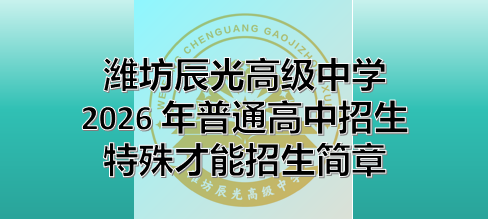 潍坊辰光高级中学是潍坊市教育局和潍坊市行政审批局批准成立的全日制民办普通高中。学校位于北辰校园东北区,依托民校优势,进行精细化管理和精准育人,聚焦特色发展,力争打造成潍坊最高品质的现代化学校。学校规划在校生840人,2024年面向潍坊市区(包括市直初中、奎文区、潍城区、寒亭区、高新区、经济区、坊子区、滨海区、峡山区)招生280人。